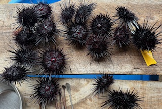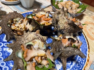 ウニ割り体験!!私は漁師の村上邸でお世話になりました。
